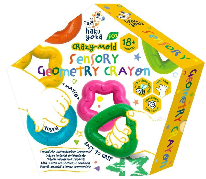 These easy-grip, beeswax crayons feature geometric shapes that support tactile exploration and early shape recognition. Their smooth texture and vibrant colours offer a sensory-rich drawing experience for young children as they develop hand strength and fine motor control. Priced at £15.97