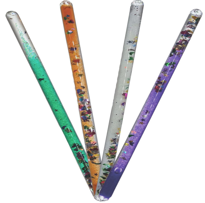 A visual and tactile sensory tool where glitter and colour flow from top to bottom, offering calming and engaging input. It can support focus, relaxation, and visual tracking for children and adults in a variety of settings. Priced at £5.99