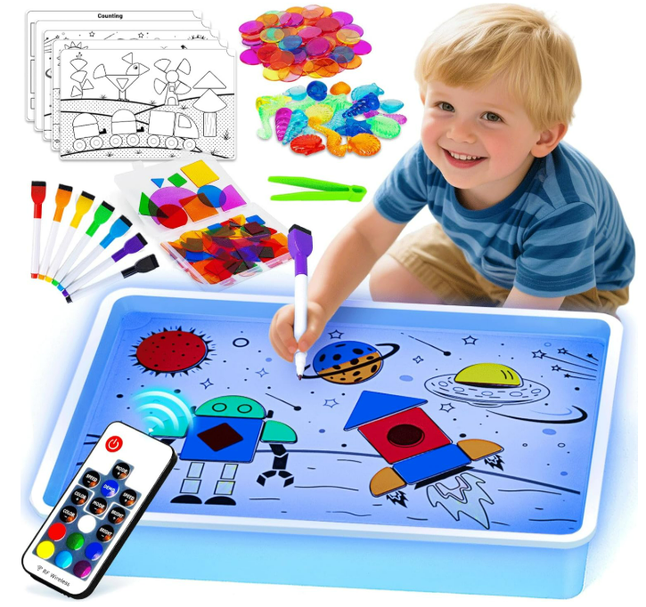 A multisensory activity table with lighting modes that support hands-on exploration of colours, shapes, and textures. The set encourages fine motor skills, hand-eye coordination, and early cognitive development through open-ended play in a variety of learning environments. Priced at £46.99