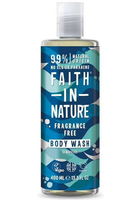 This gentle body wash is free from fragrance, colour, and essential oil, making it suitable for sensitive skin. It is free from paraben and SLS, and made with 99% natural origin ingredients. Approved by the Vegan Society and cruelty-free. Priced at £9.96