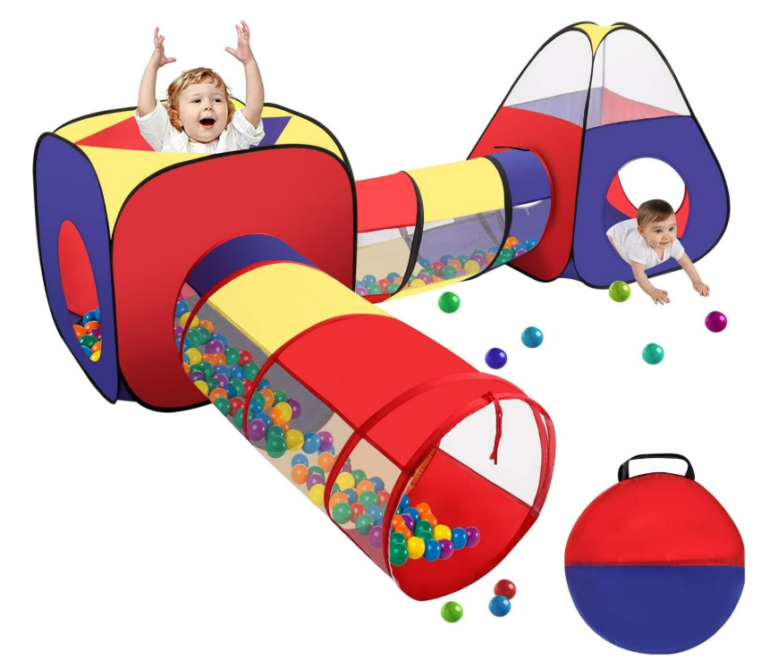 This foldable tent and tunnel encourages crawling, climbing, and imaginative play, helping toddlers develop motor skills, coordination, and spatial awareness. Can be used for indoor or outdoor fun that sparks creativity and endless giggles. Priced at 18.99