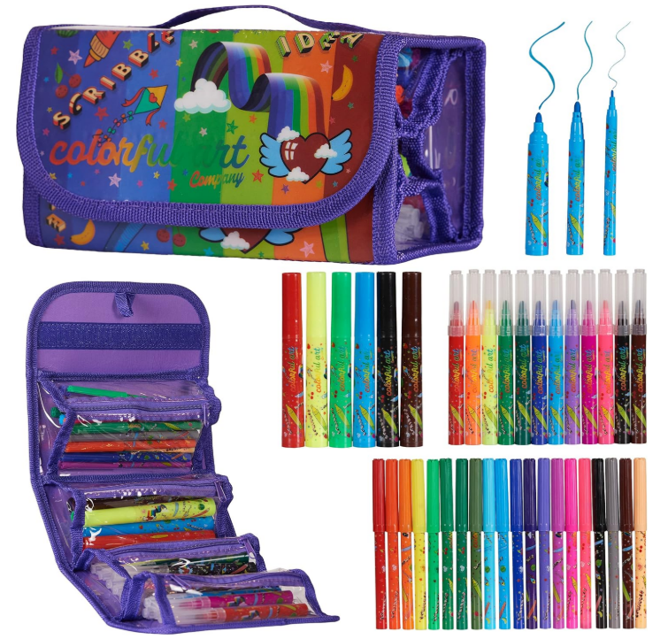 This set includes 38 fruit-scented felt-tip pens in assorted colours, providing a fun and engaging creative experience for children. ACMI-certified and non-toxic, the pens are safe for children. Priced from £14.99
