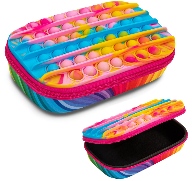 A pencil case that combines practical storage with tactile sensory engagement. The silicone bubble top provides fidget-friendly interaction while the roomy interior keeps writing tools and small items organised. Priced at £13.99