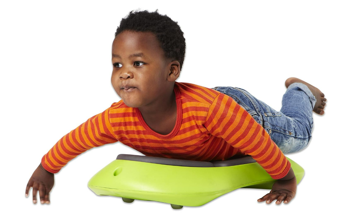 A thoughtfully designed ride-on board that supports motor skill development through prone or seated movement. Its smooth surface, screened wheels, and supportive contours offer a controlled way for children to explore balance, coordination, and body awareness during active floor play. Also a great toy for children seeking vestibular sensory input. Priced from £136.87