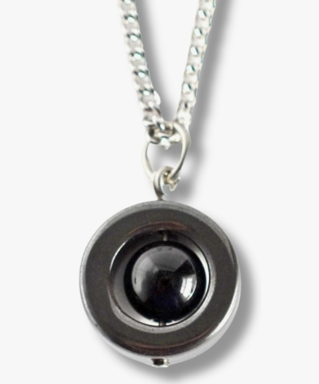 The Hematite Spin Necklace features a 12mm hematite ring and a 6mm central gemstone bead that can be spun to help ease stress, combining style with a calming fidget function. Handmade with real semi-precious stones on a durable stainless steel chain, it is available in 16”, 18” or 20” lengths and comes packaged in an eco-friendly gift box. Priced at £19.99
