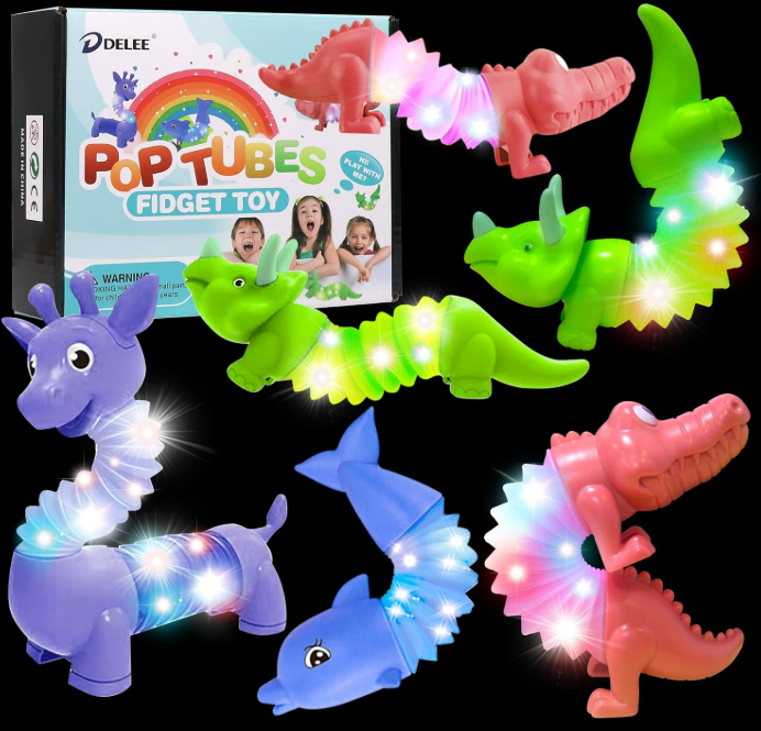 These colourful pop tube animals can be stretched, twisted, and reshaped into dinosaurs, crocodiles, giraffes, and dolphins. The built-in LED lights add a glowing sensory element, providing a tactile and visual experience that can engage children and offer a calming, stress-relieving activity for all ages. Priced at £15.99
