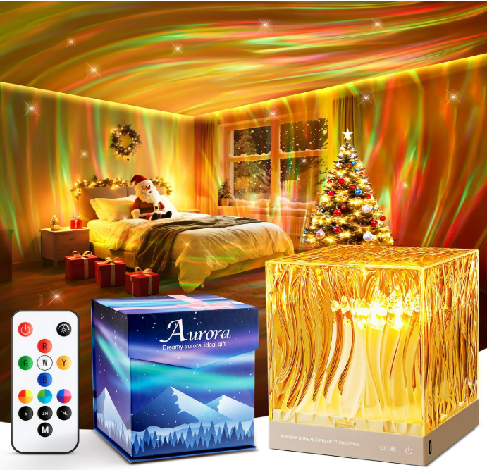 Create a magical, calming atmosphere with this sensory night light projector, offering 18 colours, 162 effects, and 360° rotating aurora lights. Priced at £29.99