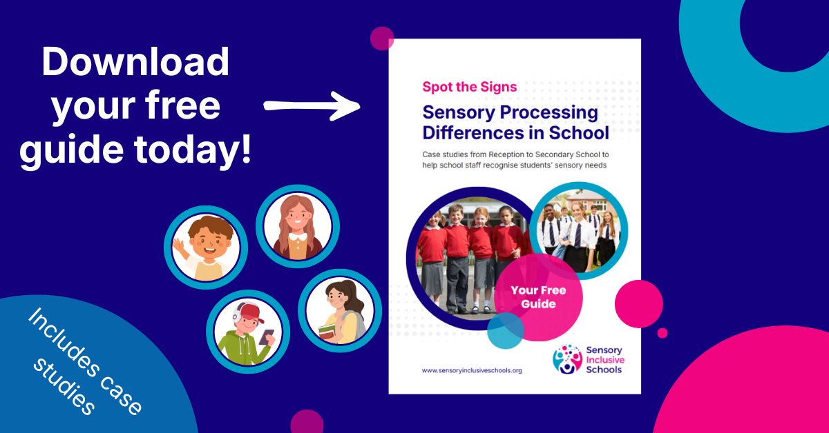 Also if you work in a school setting or know someone who does, we have a free guide Spot the Signs: Sensory Processing Differences in the Classroom available on our sister site Sensory Inclusive Schools which shares realistic classroom case studies from Reception to Year 11. Read the article below to find out more!